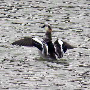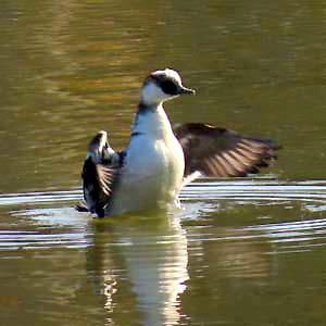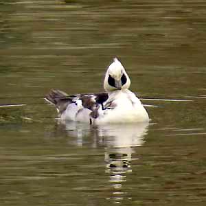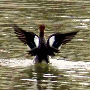 ![]() アカハジロ×ホシハジロの交雑種? ミコアイサ♂(外堀で) 5・6羽居た |