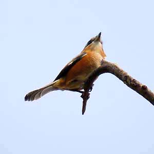 今日もリュウキュウサンショウクイ狙いで服部緑地、日本庭園へ。えぇ、今日は出ないなぁ・・。代わりにイカルが皆さんの相手をしている。そして後半はアオバトに交代。どちらも嬉しいのだけれど、やっぱりリュウキュウサンショウクイをもう一度ちゃんと撮りたい・・。そのうちハイタカが近い所に飛んで、盛り上がったが、「これではリュウキュウサンショウクイは無理かもね・・」 誰かがポツリと言った。 |