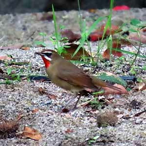 大泉公園のサンカノゴイ、体調の悪かった頃に、ほゞ1か月近く撮り放題だったらしいが、その後一度抜け、戻り、また抜けて、更にまた戻ってきた。前回戻った時にも行ったが会えず、二度目の今日こそはと思ったが、やはり会えなかった。多分居るだろうが出て来ないのだ。代わりにというには少しお粗末だが、アカハラは撮れると、鳥友さんが自信をもって案内してくれた。餌付いているので、餌を置いたら1秒で来ると言われたが、??来ない・・。およそ10分位待って、突然現れた。それからはまさしく、餌を置くと同時位に降りてくる。置きピンで、運よく飛び立ちも何とか撮れて、今日はこれで納得。サンカノゴイは以前に何度か撮れているので、もう終りにしょう。 | |