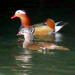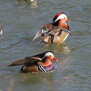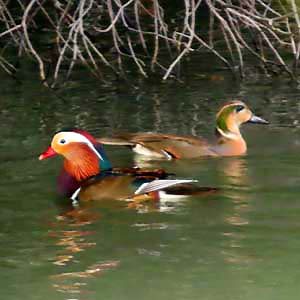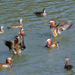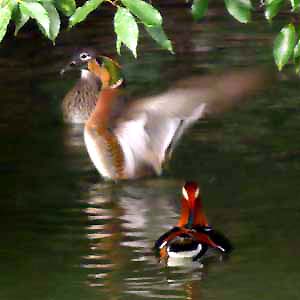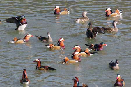 ![]() 潜んでいたオシドリがいっせいに流紋を引いてと出てきた |