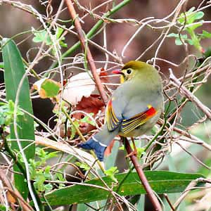 ![]() ソウシチョウ 外来種だがこれはきれいなので人気者 |