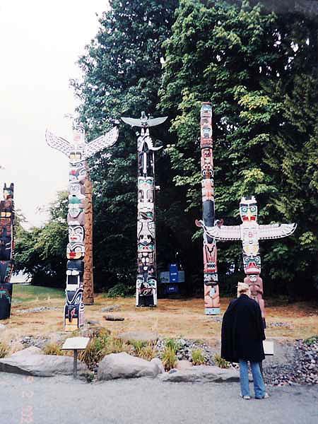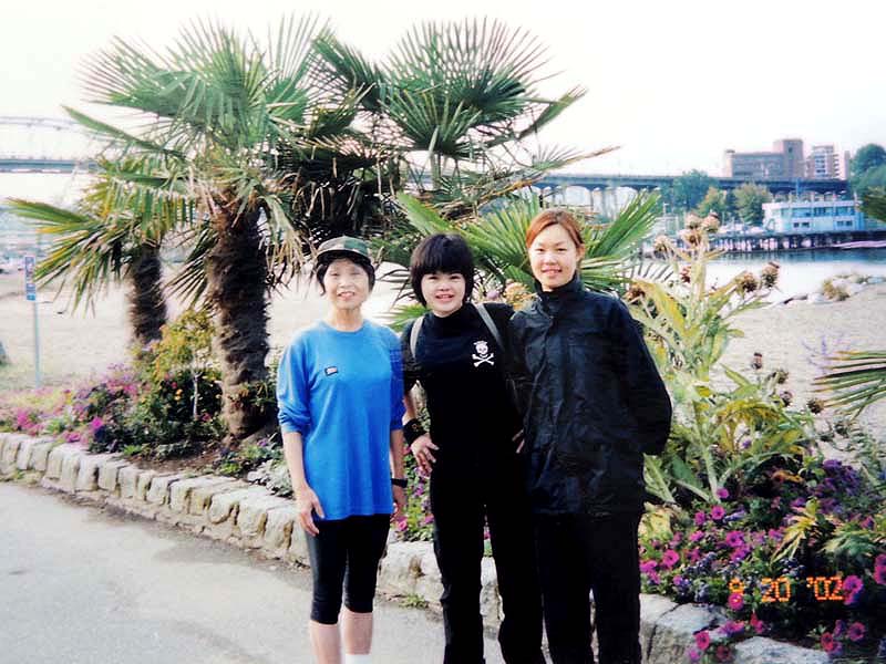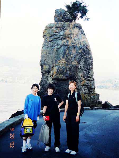 関空出発では優美さんが見送りに来てくれた。飛行機の乗り方から分からない私にはやはり心強い。なぜか心が凍結状態。 ちょうどお昼頃で、チェックインには早すぎるので、荷物預かりを頼んですぐ町を見学に出る。YHで地図をもらったのでそれを見て市内を歩いてみる。説明ではイングリッシュベイがすぐ近くだというので、西へ向かう。すべての通りに名前があるので分かり易い。これなら迷うこともなさそうで、時間いっぱいダウンタウンを散策してみようと決める。日本から持ってきたペットボトルとお菓子、機内のパンが昼食になった。日差しは暑く、まだ夏の季節。海岸はのどかな感じで、誰も人のことにかまってはいない。時折ジョクギングをを楽しむ人が通り過ぎる。 歩きながら、まず学校を確認するべきと気が付いた。地図では一番東寄りで、ロブソン通りなどの中心街の少し外れになっている。通り1本の距離が知れているので端から端まででも十分に歩きに耐えられそう。地理を知るには歩きが一番と決めてぶらぶら歩く。肝心の学校の場所まで来ているのになかなか見つからず何度も行ったり来たりしてやっと学校を確認。明日はホリデーだが明後日からここに通うわけだ。それにしてもカナダジャーナルの人は何か連絡をくれるのだろうか。 そのままウオーターフロント駅にでてしまった。歩いているとあっという間に地図を超えている。公園風になっているので気ままに歩くとビッグクルーズが停泊している。ファミリーの観光客がそれぞれにアイスクリームなどを手にぶらついている。 そうだインフォメーションで明日の観光の段取りをしておこう。ところが皆が手にしている順番札がどこなのかわからない。仕方なく、そばの外人に聞くと傍の柱を教えてくれた。何にせよ、一つのことをするのにいちいちやり方を聞かないと先へ進まないのが歯がゆい。順番が来て、たどたどしい英語を話し出すと、すぐに「待て」と言われ、日本人スタッフに変えられた。おかげで私はしっかりと説明を聞き、さらに来週の予定の観光も聞いておくことが出来た。グラウス山をハイキングすることもシーバスの乗り方も丁寧に教えてくれた。こんなところで、日本語も英語も使いこなして、旅行者の役に立つ仕事をするなんて、すごい事だと心底感心する。 このままシーバスの乗り場を確認し、券の買い方も覚えておこうと歩き出す。ウオーターフロント駅から中に入り、改札まで行ってみた。大丈夫これで来週はもたもたしなくて済む。駅からすぐ近くにガスオクロックがあり、時々蒸気を噴出している。ああ、ここが有名なガスタウンタだと分かる。カメラは出来るだけ最小限にと思うのに、見るものすべて珍しくついパチリと撮ってしまう。すでに1本近く使ってしまっているのに驚く。 後はいずれ必要だと郵便局・図書館を地図に従って確認。だんだん夕方になり、しかも公園の傍を通り過ぎるとき異様な雰囲気を感じて、足早に離れたが、後で聞くとチャイナタウンに近かったそうな。注意、注意! 最後にカナダガイダンスに寄ったが日曜のため閉鎖。今晩の夕飯に7イレブンで買物をし、YHにもどる。慣れない通りに地図の見方を間違えて、思いのほか手間取ってYHに戻る。チェックインをして,13日分の宿泊費をカードで払い、部屋に入ると4人部屋の下段ベッドに足を伸ばした。日本女性が1人いて、明日には出発するが、バスの回数券が1枚残ったからといって私にくれた。荷物をチェーンキーで止め、キッチンを覗くと大勢の外人がそれぞれにりっぱなデイナーを楽しんでいた。初めてのシャワーを浴び日記を書いてから寝た。 2002年9月2日(月) 9:00起床→YH10:30発→オリジナルツアー・スタンレーパーク→14:30解散→個人散策(トーテンポール・東海岸沿ウオーク・ライオンズゲート往復徒歩・プロスペクトポイント)→フリーバス・公園入口→徒歩18:30YH→23:30就寝 朝起きてみると雨。夕べの日本人はもう出かけた後。バスの券のお礼を言いたかった。今日は自転車を借りて市内を見学と思っていたが、雨ではやっかいだ。YHの案内で相談していると、ちょうどスタンレーパークのオリジナルツアーがある、と言うのでこれはラッキーとすぐ申し込んだ。もちろん参加料はタダ。バンクーバーのもう一つのYH・センター組もあわせて10人位で出発。中に日本人男性が1人いる。引率は日本に長く滞在したことがあるという、高校教師。「よろしくお願いします」というと「分かりました」と返事をしてくれた。デービーSt.から⑥のバスに乗る。ここで初めてバスに乗ったが先ず乗るときに$2を払うのにあわてた。昨日もらったばかりの1枚は2地区用なので次の機会にとっておき、朝一番YHの受付で$20チェックを両替してもらった小銭で払った。 カナダへきてすぐにやらなければならないことに両替があるが、YHで裏にサインしてパスポートを見せれば簡単にトラベルチェックをカナダドルに換えてくれた。何事も「案ず