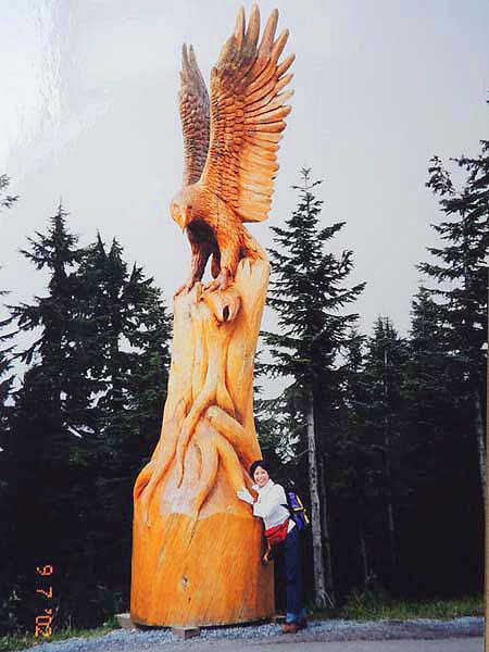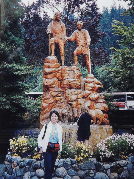 7:15起床→YH8:30発→学校8:45着→12:30(トイックテスト)→14:30CRIS授業→17:00カナダガイダンス18:20→19:00YH 授業2日目。昼休み土日のキャンプの申し込みをしたら、人数が少なく中止になったという。ほとんどが明日からの「カナチデイアンロッキー」の旅に参加するらしい。私も後日に予定していなければ当然参加するのだが、ちょっと早まったかな?この費用を払うのにいよいよ銀行で日本円の両替を必要かと思い佐々木さんに付き合ってもらおうと思っていたがその必要もない。又彼女の部屋へ誘われたが続けては厚かましいと断り、5階の広間に行くと溢れんばかりの学生で場所もない。仕方なく床に座り込んでサンドイッチを食べていたら、隣の女の子が「トイック受けますか?」と聞いてきた。「あヽ、そんなことも言ってったっけ」と思い出し、「受けない」というと、「なぜ、誰でも受けられるのに?」と問いかけるので、「なら受けてみようか・・・」と簡単にその気になり、急いでテストの部屋に入った。試験開始寸前で、思いがけずトイックに挑戦する羽目になった。テストが終わり、答案用紙の回収時に初めて受験資格のないことが分かった。トイッククラスのみということらしい。彼女私を同じクラスと勘違いしたらしい。とりあえず用紙を渡しておき、午後2時限目の教室に行くと、テストの担当教師のクラスだった。授業終了後、内緒でトイックの採点を頼んだらOKしてくれた。ラッキー! 放課後カナダガイダンスに寄り、今度はPCがうまくいき、メールのセットアップ成功。すべて事務所のお嬢さんがしてくれたのだが・・・。とりあえず皆にメールを書き送ったが、肝心の勝虎の分はエラーになってしまった。でも後は学校からでもメールできるのでひとまず落着。 2002年9月6日(金) 7:00起床→YH8:20発→8:45学校着→12:30PCメール13:00→16:00授業終了→買物→17:30YH→19:00夕食 少しずつ余裕が出てきたかな?最初の月・火と午前中雨が降ったのみで、後は上天気が続いている。暑い。 授業は相変わらずいまいち。しかし今日は金曜日で授業なしの人が多い。しかもスクールアクチビテイで皆カナデイアンロッキーに行っている。来週月曜までの予定。何かほっとする。 早速昼休みの半分をPC利用に当てる。早くも上田さん・長崎さん・菊池さんからメールが入っていた。やはり懐かしくて嬉しい。 今日は少し多めに買物する。食堂の感じもようやく慣れ、ここで日記や翌日の予定などを立てればいいと思う。狭く暗いベッドで窮屈にしているより快適だし、他の外人と話せるチャンスがあるかもしれない。 夕食後、まずは明日の日曜日の予定、グラウス山へのハイキングうまく行くかな? 8:00起床→YH9:30→10:00観光案内所→シーバス→11:00(#236バス)キャピラノ渓谷吊橋→12:30グラウス山登山口→13:50グラウスgrind→昼食休憩(レストランにてcoffee)→14:30リフト(無料)→グラウス山頂上→walk down→15:30grouse-grind散策→16:30sky劇場(立体映画)→17:00ゴンドラ下山→(バス・シーバス・スカイトレイン)グランビル駅→18:00YH 朝起きると曇っていた。休みの度に雨か…と少し憂鬱。明日は必ず雨になりそう、と思うと、今日は是が非でもグラウス山へ行っておきたい。 例の観光案内所へ行き、日本人のマミさんを探すが今日はいない。前に行ったときにバス・ゴンドラ・公園入場料込みで$20という格安チケットを勧められていたのに彼女がいないと要領を得ない。結局、個別にチケットを買うことになる。 シーバスは前に確認していたからすんなりと乗る。わずか10分位でノースバンクーバーに着いた。途中の景色も左程のものではない。乗継のバスもすぐわかった。YHで一緒の女の子2人連れに出会ったが、直ぐに別れた。せっかく直の英語を学ぶチャンスだから出来るだけ日本人で固まるのは避けたかった。 キャピラノ渓谷・吊橋等賑やかな観光地だが、規模も小さく大したことはない。日本の谷瀬の吊橋やかずら橋の方が余程面白い。次に地図を見てキャピラノ川沿いに養鱒場~ダム~グラウス登山口へ行きたいと思ったが無理といわれ、又バスに乗って登山口まで行く。 登山道ははっきりしていて、ファミリーが多く、タイムを競う大会もあるらしく、迷うことは全くない。私は念のためゆっくりと歩いたが、1組のファミリーのまだ6・7歳の女の子が必死で付いて来て、追いつ追われつするうちに目障りになり、ついスピードを上げてしまい、後で思うと苦笑ものではあった。 1時間20分位で山頂公園に着く。周囲は整備され、至る所に彫刻が置かれていい感じである。とにかくお腹が空いていたのでレストランに入りコーヒーを買い、持参のサンドイッチでお腹を満たした。周りを見ると持参のフルーツやパンを食べている人が多い。レストランのテーブルをあったかいコーヒーだけでそんな風に使っても平気のようだ。 外に出て、見上げると山頂まで歩いても行けそう。だが歩いて登る人はいない。無料リフトを利用しない法はないのだ。山頂は
