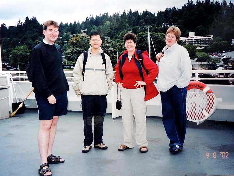 9:00YHロビー集合→⑥バス→#257エクスプレス→ホーシュベイ→(フェリー)ボウエンアイランド→Snug Cove→Killorney Lake→昼食→Museum→(フェリー)ホーシュベイ→#257バス→ダウンタウン→YH 今日はYHのoriginal tour・BOUEN ISLANDに参加。朝lobbyに集合。 参加者は ブライアン(台湾香港)・DANIEL(ダニエル)(ENGLAND)・DENICE(デーネイス)(NZ)・SABINE(サベイナ)(Australia)の4人と私。 ホーシュベイからのフェリーに乗っている頃雨が降り出した。前週のYH ツアーと違い時間が経つほどに本降りとなって来る。 フェリーを降り、コーヒーを買って、なにやら現地民族展示館のような所に立ち寄ってから、今日のメインコースに入っていった。広い公園になっていて、標識があり、順回路が示されていた。雨のせいかほとんど人に会わず、静かな森を散策している ような感じ。スタンレーパークにも似ている。Killoney Lakeのほとりで昼食タイムとなったが、雨の中早々に食べ終わる。不 思議なことに雨の中誰も傘をささない。そういえば、down-townでも雨の日に傘を見ることはない。外国人は傘を邪魔に思うのだろうか。代わりに皆分厚いコートを着込んでいる。 また歩き出し、台湾人のブライアンさんが気を使って親切に説明してくれるが、悲しいかな半分以上わからない。 かなりクリアーな英語なのにそれでも???・・・なのだ。もう少しヒヤリングが出来れば他の3人とももっとコミュニケーション出来たのに・・・。外人ばかり4人とのツアーなんて最高のシツエーションなのに。 それにしても台湾人のブライアンさんはなんと17歳だった。大人びて見えたのもだが、ボランテイアでツアーリーダーをしているなんて、さすがカナダらしいお国柄! 天気がよければカヌーなどのオプションもあったのだが予定を切り上げて、来たコ-スを早めに戻る。 Down-townで解散。暗くなりかけた町に寒さが重なって、一刻も早くYHに戻りたかったのでつい、ブライアンさんの「お茶でも