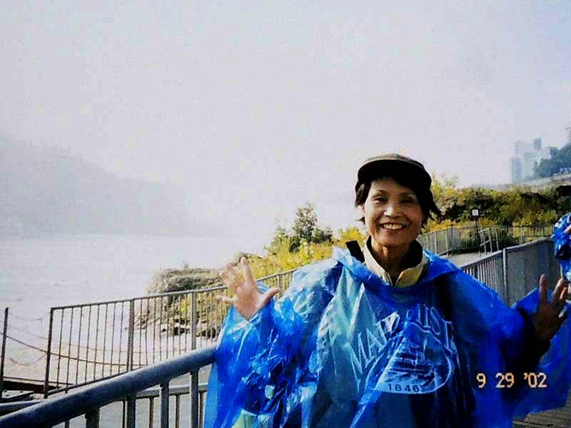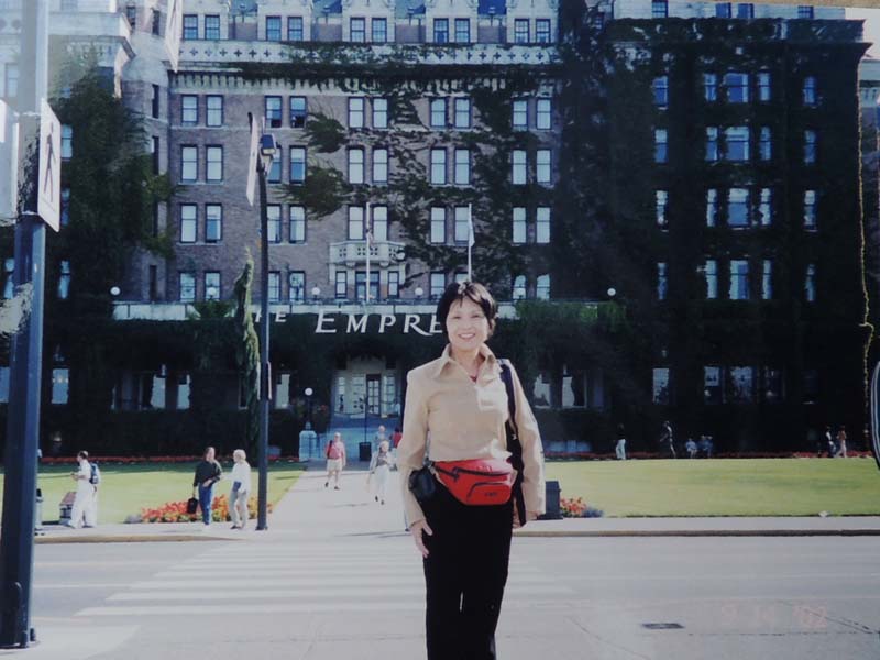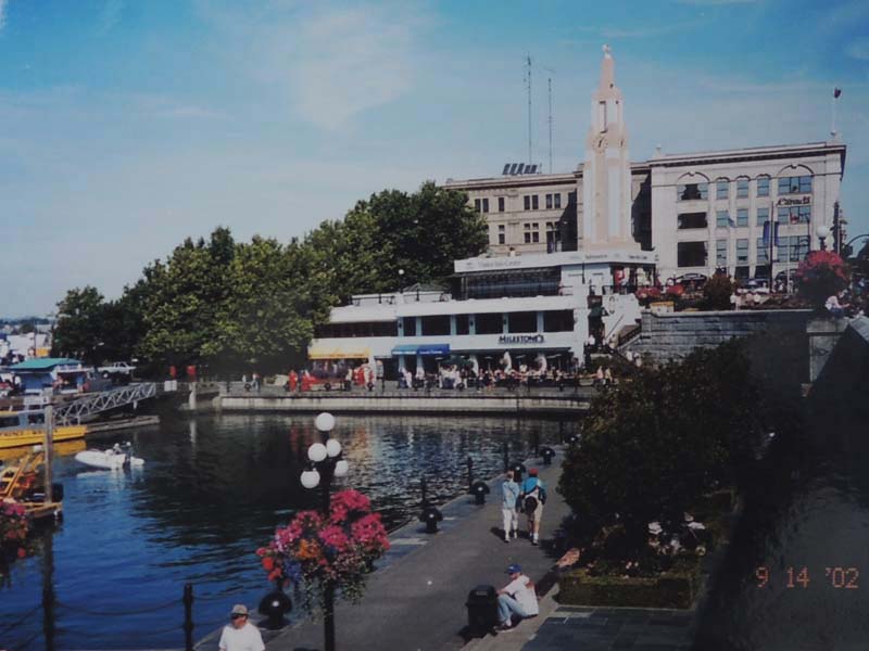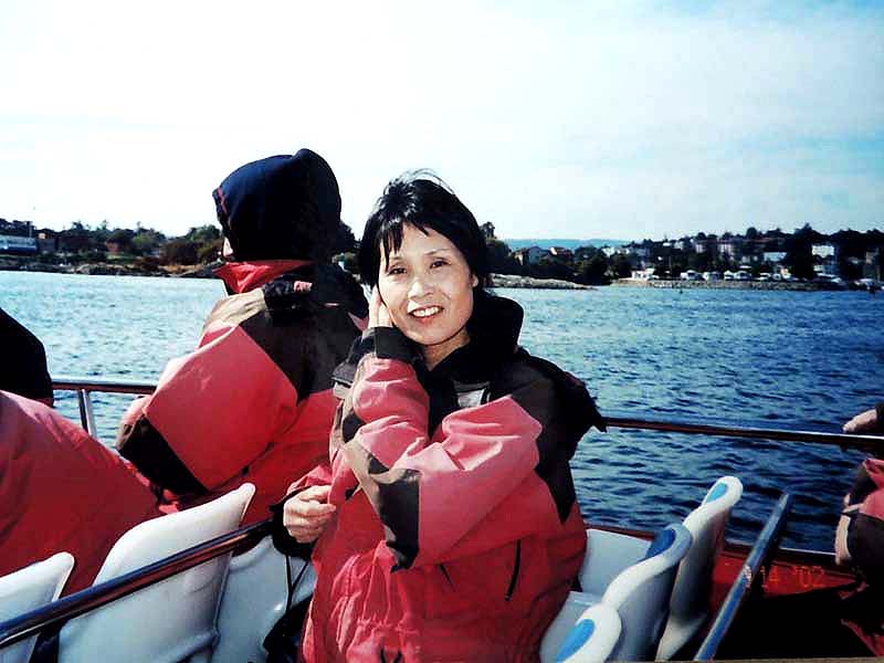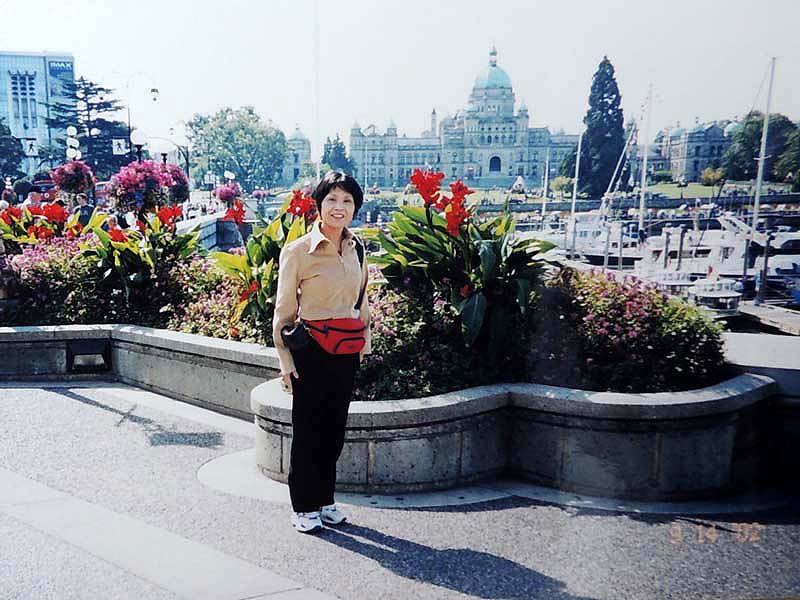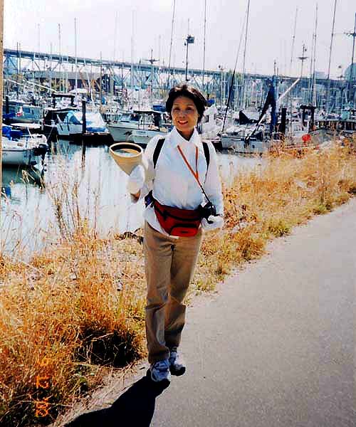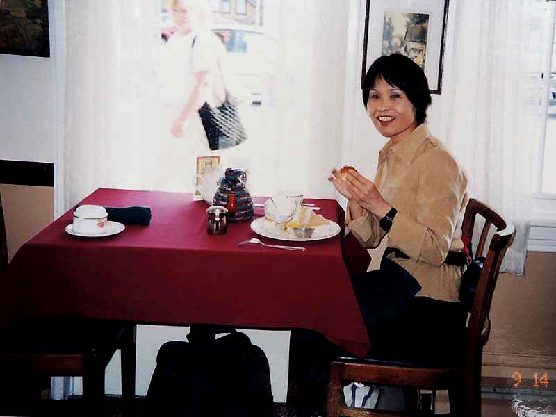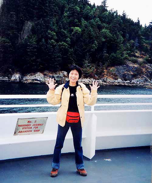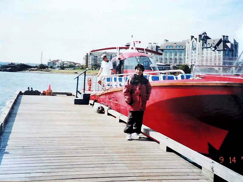 7:15起床→YH8:30→9:55学校→①1-Ⅰ・②1-Ⅲ→12:00観光案内所13:00→③1-Ⅳ・④1-Ⅶ 一昨夜が下痢で眠れなかったのに、夕べもまた寝付けずうとうとしていたようだ。上段bedの二人に目覚ましを頼まれていたので気になったのかも知れない。 今日は金曜日なのでいつもの授業とは違う。午前中は何とか楽しかったが昼から2時限目が面白くなかった。でも先生が丁度明日から1週間旅行に出かけるというので、来週は別の先生になるだろう。 昼休みにinへクジラ・ウオッチングのチケットtを申し込みに行った。学割が利いて$15ほど安くなった。Lucky! この調子で他のツアーも安くいけるかな? ところで今日は一度YHを引き上げて、明日はビクトリア行きだ。住み慣れた部屋だけど一応心機一変するにはいいかもしれない。というわけで、今日は一旦荷物の片付け。小のリュックで行くつもりが、結局、中のリュックで行くことにした。来週はこのリュックを日本へ郵送しなければならない。郵便局でうまく送れるだろうか? 5:00起床→6:00check-out→YH6:30→6:47⑥bus→Granville駅7:15→Main駅→busデポ7:30→ferry→11:30Victoria→観光案内所→James-room(afternoon-tea$11)→14:00whale-watching14:30→17:30帰港→18:00YH(check-in)→マクドナルド$6.75→21:00就寝 朝早く5時前に目が覚めた。同室者を起こさないよう荷物を外へ出そうとうっかりカードを持たないままドアを出てロック状態になる。そっとドアーをノックするが皆眠っていて反応なし。フロントへ行ったら誰もいない。一瞬パニック。慌てたらあかん、と言い聞かして受付のベルを押す。出て来たスタッフに別のカードをもらいやっと部屋に入り、他の荷物も廊下に出して、ごそごそと整理。フロントに荷物を預けバスの時刻まで食堂で朝食を取り、歩いて5分のDevie-St.のバス停へ。予定通り始発に乗り、電車に乗り継ぐ。電車の中で一人の外人が私の茶色の上着がとても良いとほめてくれた。全く知らない人だけどほめられたのは初めてでなんかホワッと嬉しかった。 Main駅からバスに乗り込む。満席で出来れば隣席が空いたままであれば良いと思ったが、老女性が座った。それならと少し会話をしてみた。感じのいい人だった。 フェリーではものすごい人数で、甲板もどこも人で溢れていた。日本人もうようよ居た。皆が外国に居ることを忘れたかのように、グループで自国語をまくしたてていた。写真を撮り合い、お菓子を頬張り、笑いこけていた。私は一人場違いな気がしていた。 陸が近づくと運転手がしつこく繰り返していた№2004のbusに早い目に戻った。時刻どおりにビクトリアに着いた。明るい! 直ぐそばに海があり、海を臨むように州議事堂が見事な建築様式を披露している。あの有名なエムプレスHotelはBusデポの目の前に立っている。英国に行ったことはないが、町はまさしくイギリス王朝を思わせる。 私はまず案内所を探した。フェリーの中にあった地図を広げて確認する。Inは直ぐ分かった。順番を待ち、クジラ-watchingの集合場所を聞き、次にアフタヌーン・ティーについて聞く。本に紹介されているエムプレス-Hotelは$39と高すぎるので、もっと安くて楽しめる所はないかと聞いたら、少し離れているが$9のアフタヌーン・ティーを教えてくれた。 あとで聞いた話だが、エムプレスHotelのは長い待ち時間で、パサついたサンドイッチやぬるいお茶で値段だけが高級だということだ。それに比べると、教えてくれたJame’s-roomのは本当に美味しかったし、地元の人達が楽しんでいた本当のアフタヌーン・ティーだったと思う。 ウエイトレスと思っていた美人はどうやら店の女主人らしく、私はついこの優雅な雰囲気を残しておきたいと写真を頼んだら気持ちよく応じてくれた。 受付を済ませ、防寒と防水のための分厚いだぶだぶの上下が用意された。この晴れ渡った暑い日差しの中でとても着れたものではないと思っていたが、それはやがて海に向かったとき直ぐに納得した。 艇はゴムboatでなく、50人くらいを乗せた比較的安定感のあるものだったが、沖へ出るほどにスピードを増し、大きな波のうねりに身体が椅子から放り上げられて宙に浮き、ものすごい波しぶきが頭から襲ってきた。前から3列目に位置していた私は前二人を盾に、かなりましな方だったが、それでも全身が水浸し状態。海風を受けて寒さも尋常ではない。せっかくのカメラも濡れるので出すに出せない。30分もすると船酔者が続出。幸い私は全く平気で、面白くて興奮気味で、むしろ鯨など見られなくても船のこのものすごさだけで満足だとさえ思った。 沖へ出ること約1時間半。もう太平洋のど真ん中にまで来たのではと思うほど、周りに全く陸が見えないところで、艇は止まり、見ると同じような艇が数隻波間に小さく漂っている。突然合図の音。鯨が出たのだ。指差す方を見ると、わずかに黒い背中が一瞬波間に見え、船中がどよめいた。再び背中が現れ、距離を置いて鯨の進行と平行に艇はゆっくりと追う。鯨は呼吸に合わせて数度