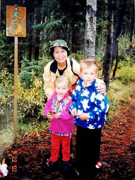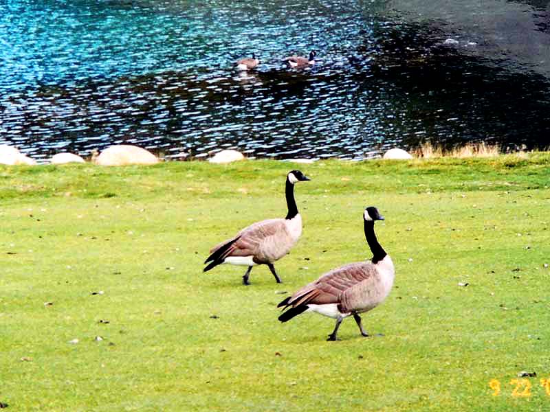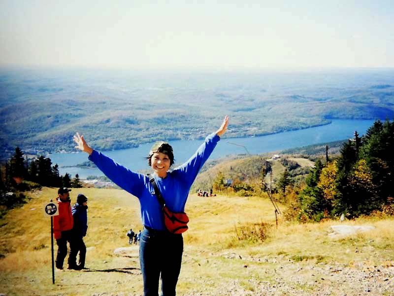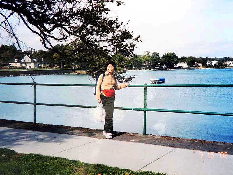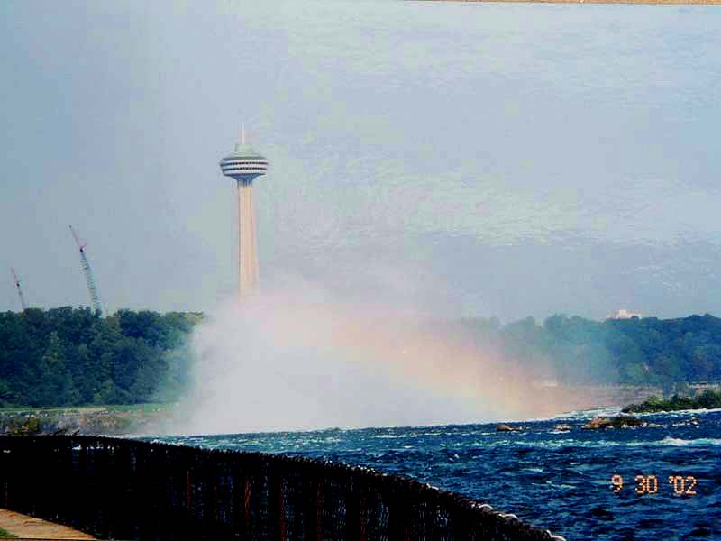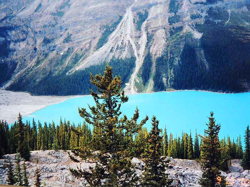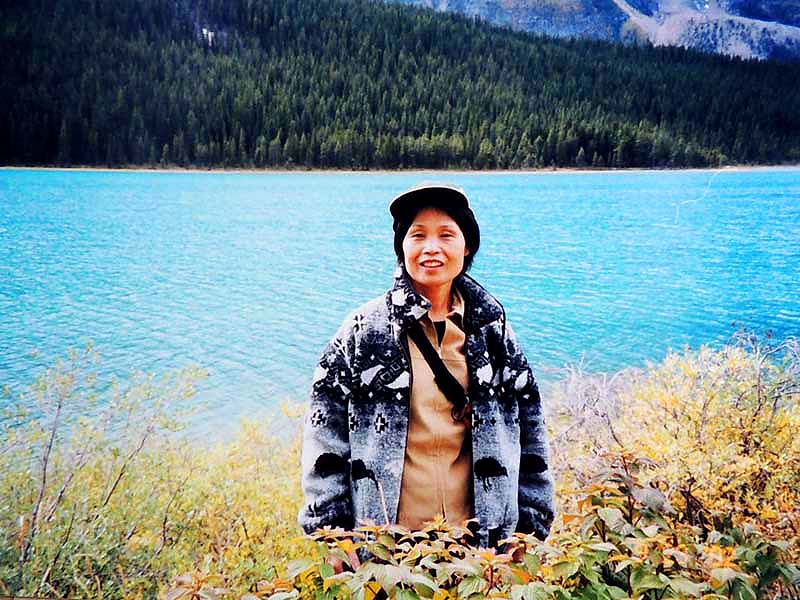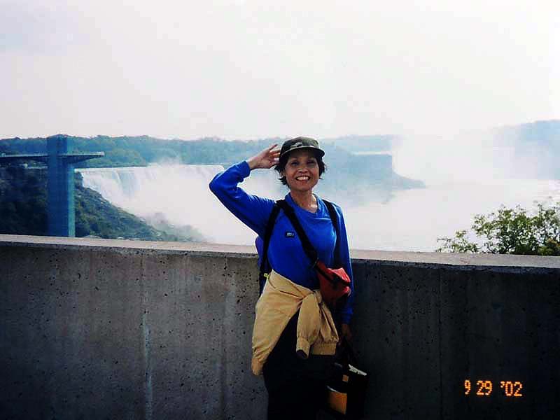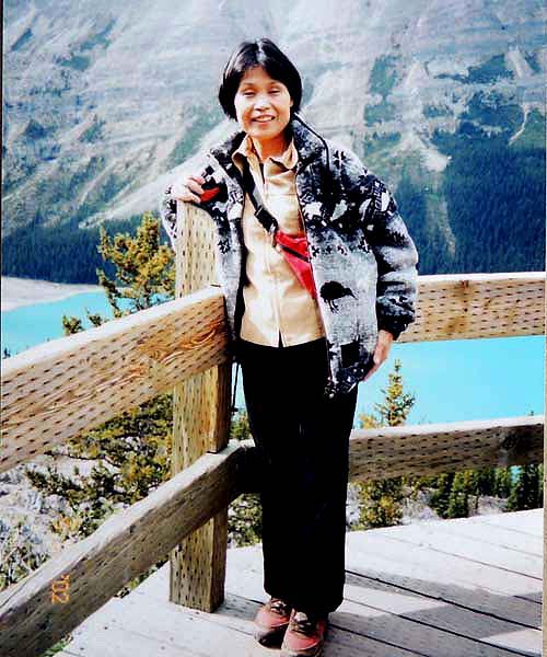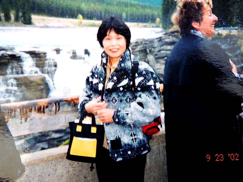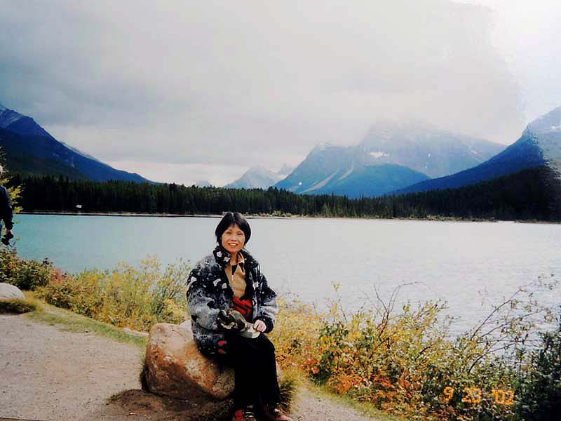 YH10:00→10:30in11:00→12:30Chateau Hotel13:00→14:30アグネス湖→15:30Hotel→16:30YH17:00→busデポ17:30→18:30Banff YH 朝一番昨日できなかったモン・トランプランのYH予約をしょうとTELしたが、カードがまたうまく使えない。 私は仕方なくOn-Lineで予約をとPCを借りたが、コイン$2で20分の時間はあっという間に時間切れ。スタッフに手伝って欲しいと頼んだが、やはり説明不十分で行ってしまった。やり直して又時間切れ。結局予約は取れないまま、10時のチェックアウトの時間になった。慌てて荷物を部屋から出したので、洗面所に化粧道具を置き忘れたのを後で気が付いた。つくづく1泊のみの移動は落ち着けないと痛感する。とりあえず荷物を預かり室に置き、今日1日の行動を開始。 先ずinへ行く。何処へ行っても頼る所はinしかないのだ。直ぐに順番がきた。私は先ず、Mont-Tremblant(モン・トランプラン) YHへの電話の仕方を聞いた。昨日からどうしても通じないと言ったら、私のテレフォンカードでスタッフが先方に繫いでから交代してくれた。話は簡単、これで9/27の宿泊はOK。さすがin、やっぱり頼りになる。 次に今日夕方のバンフ行きのバスチケットを買い、やっと今日の予定アグネス湖への地図をもらった。 既に時間は11時。昨日見た(シャートー・レークルイースへ今度はハイキングで行く。横からサイクリングの数人が走り抜けて行くのを見て、自転車を借りれば良かったと後悔する。 歩き出して直ぐ、ニッキーという女の子に会った。見るからにボーイッシュな感じで、てっきり男の子と思っていたら、Chateau Hotelに勤めていて、今出勤途中だと言った。Inでコースを確認したが、少し不安だっただけに、地元の人なら安心と同行を頼んだらあっさりOKしてくれた。まだ少女のようなあどけなさで、ヘッドフォンをつけて何やら音楽でも聴きながら歩いていたが、私が遠慮なく話しかける度にヘッドフォンをはずしていた。私が60歳だと言うととても驚いて、感心していた。そのうち、又熊の話になり、姿勢を低くするなどの熊対策をしきりに教えてくれた。広いbus道を行けば安全で分かり易いのだが、ハイキングコースは道から外れて森の中を歩くようになっていて、丁度今にも熊の出そうなところを歩いていたので、彼女の存在は頼もしかった。 あっという間に1時間を歩き、しかしそんな彼女も道を間違えて、うっかりMoraine Lakeの方へ行きかけていた。私が色々話しかけるのでいつもの調子を狂わせたのかな?しきりに謝る彼女に笑って「Don’t worry!」と答えて、自分も地図で確かめる。歩いた時間からしても、もうほとんどHotelの近くまで来ているはずなので、広い車道を行くことにして直ぐに昨日見覚えのある場所に着いた。ここで気のいい彼女と記念の写真を撮り、別れた。 私はhotelの軽食店でパン(ケーキのように甘い)とコーヒーを買い、他の旅行客に倣(なら)って、廊下の窓ガラス前に腰かけて食べた。人気のある有名なホテルだけに人で溢れていた。運悪く、食べ終わろうという時にそれまでのお天気が信じられないほどのものすごい雨になり、これから本番のアグネス湖行きが危ぶまれた。が、幸い20分くらい待つと今度は又信じられないほどの上天気に変わり、湖の上に虹まで見えた。 時刻は午後1時。夕方までに荷物を取りにYHに戻り、バンフ行きのバスに乗らなければならない。ここまで予想以上に時間がかかっただけに大丈夫かな?という気もしたが、行ける所までで帰ってこようと割り切る。 Hotelの左側から回り込み裏手から山へと道が付いている。しっかりした道で標識もはっきりしている。これは迷いそうにない道と思えたが、やはり人は少ない。と言うよりはほとんど見かけない。数グループが下りて来るのに出会う。いずれもツアーガイド付き。が、これから登る人はいない。当然「熊に注意!」の立て札が目立つ。いつもいつも何故こんな風に孤独なハイキングになるのだろう。もっと大勢の人がハイキングを楽しんでいそうなのに…。自分流に考えると不可解なのだが、現実は皆、楽な観光を好むのだ。 自問自答しながら歩くこと数10分。道がつづら折りになった曲がり角、木々が空けて見下ろした先に飛び込んだ光景に、私は目を疑った。「これは…!」神秘とも可憐とも幽玄とも・・・、絶句の美しさのchateau Lakeが静かにエメラルドグリーンを流し込んでいた。 来た甲斐があった。楽しくなった。道をどんどん登り、ミラー湖に着いた。ここが一つ目の目的地。山の中の 湖は周囲の木々を水面に写して、鏡のごとく静まりかえっていた。 小休止の後、更に登る。まだ時間の方は何とか行けそうだが、やはり急ぎ足になる。それほど長いコースではないはず。だんだん高度を感じて頂上が近づく予感。岩が多くなり足場が悪くなる。階段が現れ、登りきった所に、見えた、アグネス湖。頂上に位置する湖・・・。 ログハウスの営業小屋があり、カップル・グループなど数人が談笑している。ここまで来たらやたら
