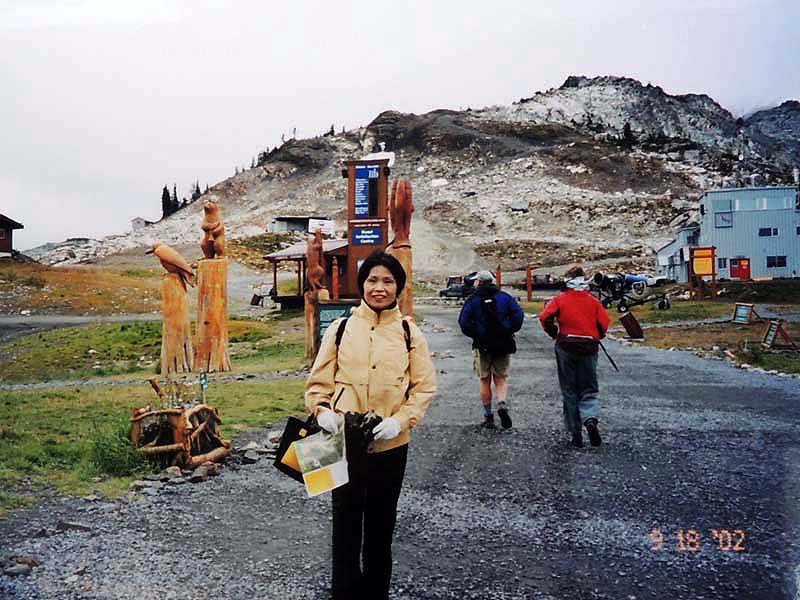 7:15起床→8:30YH→8:55学校→12:00から12:50パソコン→授業→16:00から16:45パソコン→18:00YH 今週に入り何かが違ってきた。学校が少し面白くなってきたような。前の人がいなくなり新しい人達が入ってきて、雰囲気が変わってきたのだ。先生とのコミュニケーションも少しづつ取れてきたというか、でも明日はウイイスラー へ行くことに決めたのだ。先週なら1日くらい休んでも全然もったいないとは思わなかったろうに。 昼からの授業も昨日のクラス変更のおかげでずいぶん面白かった。やっぱりもっと早くに変更するべきだったかも。そしたら案外学校生活も楽しかったのかも・・・。 無料パソコンの時間が残っているので昼休み・放課後と目いっぱいメールする。来週トロントへの旅行が始まるともうメールどころではないと思われるので。 夕方、YHで食事を作っていると、カナダ移住のための家探しに来たという日本人男性がいて、一緒に食事した。かなりのインテリ人らしく、久しぶりに中身濃い会話を楽しんだ。 5:30起床→⑥バス6:48→Main駅8:00→10:30Whistler-village→ゴンドラ山上駅11:00→小ピーク→中ピーク→12:30ロングコース→ゴンドラ15:15→15:40Whistler-village→散策→バス17:15→19:00down-town→19:30YH 今日は学校を休んでWhistler山へ行く。朝一のバスはVictoriaの時で経験済み。ただし今回はGreyhound-Bus。 学割が効いてlucky。ターミナル内のマクドナルドでコーヒーを買いバスを待つ。車はダウンタウンを通りHorseshoe-bayを通って湖沿いに北上する。どこまでも良い景色。しかし天気はいまいち。ウイスラー村に着くと想像以上に寒くて驚いた。下からハイクしたいと思っていたが、informationで無理だと言われた。仕方なくゴンドラ券$23を買う。残念だったが、実際にかなりの距離と標高差があったのを知り正解だったと納得。 山頂での散策コースも全部回ると5~6時間かかると言われ、たまたま見つけた日本人ガイドも同じように、回りきれないよと言うので、バスの時間を考え、行ける所まで行って引き返すことにする。 この山頂一帯、冬はカナダ一番のスキー場というだけにスケールが大きく、格好のスロープが際限なく広がっている。まず手始めに直ぐ前方の小ピークを目指す。雪が付くとすばらしいスロープだろうが、今は岩がゴロゴロの火山のよう。 多少の汗をかいて難所を越えると、1枚上着を脱ぎ、そばの人に写真を撮ってと依頼する。「Sure!」と気持ちのいい返事が返ってくる。しばらく歩いて場所を確認しようとして地図をどこかで落としたのに気づく。向こうから戻ってくる二人連れに聞くと、自分達の地図をもう要らないからと私にくれた。 空腹になり、持参のサンドイッチを食べながら、時々双眼鏡を覗きながら、どんどん上り詰める。前後にほとんど人は無く、ガスって見えにくくなる。しかし道ははっきりした1本道なので迷うことは無いが、去年の根雪にすっぽり覆われた山々が幾重にも迫り、どんどん深くなる。さすがにこのまま進むと帰りの時間に間に合わないのではと不安になり、閉鎖のcottage(山小屋)を過ぎたところで引き返すことにした。下りになると急に気が楽になり、足も軽いので、あっという間にガスを抜けた。とたんに双眼鏡を失くしたのに気づいた。安物で旅行用に買ったものだから諦めてもいいのだが、後10日後のトロントまでの旅行を終えるまで持っていたかった・・・。 丁度これから行こうとしているカップル「とすれ違ったので、途中に双眼鏡の落し物を見なかったかと訊ねたが、勿論Noといわれた。仕方なく気を取り直して行くと、ロープで立ち入りを禁じている所があり、その先を見たくて、ちょっとだけ入ってみようと踏み込んでみる。おそらくスキーシーズンなら自由自在に滑りまくれるのだろうと想像しながら、いつか自分が滑っている姿を思い浮かべる。岩ばかりのガレ場で高山植物らしきものも無く、このまま先に行けないかと調べたが断崖絶壁になって行けそうに無い。もとのロープのところに戻り、ずいぶんと時間のロスだったなと苦笑していたら、先程のカップルが戻ってくるのが見えた。なにやらしきりに手を振っているのでどうしたのかと不審に思い、近づくのを待っていたら、「You’re lucky!」と言っている。彼らも私と同じ所まで行ったらしく、引き返す直前で路上に落ちている双眼鏡を見つけたと言う。そう言えば、あそこで荷物を置き,セーターを着なおしたっけ?その時に置き去りにしたのかも・・・。とにかく良かった。 私は二人に何度も「Thank you」を繰り返し、お礼に折鶴と5円玉をあげた。5円は「ご縁」を意味するのでもう一度逢いたいと思う人にあげるといつかきっと会えるのだと、何とか英語で伝えた。二人はとても喜んで受け取ってくれた。 帰りのゴンドラ乗り場まで小さな湖の方を覗いたが、人気が無く静か過ぎて少し気味悪く、こんな所で誰かに会うと返って怖いくらいだ。早々に戻り、ゴンドラで下へ降りた。 バスの時間まで1時間余、村