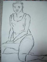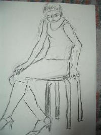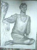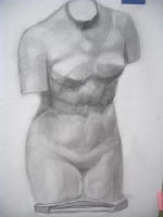 7月8月と1回ずつ用事があり、ついでに他の回もサボって結局2ヶ月お休みしてしまった。久しぶりの出席でなんか新鮮な感じ。いつもと変わらず既に皆は絵に向かっている。前回同じ絵を描いていた仲間はもう次の絵を描き上げている。私は新しく画用紙を買い、首無しのビーナスの裸体に挑戦。この教室は今年いっぱいで閉鎖なので、今から始めるのが最後のデッサン画となる。始めて約2年。意外と面白いと感じながら、結局エンジンがかからず、とうとう家では1枚も描くことなく、教室のみに終わりそう。さて、来年からはどうしようか・・・。油絵を始めようかな? (右の絵は6月時のモデル画。1回2時間きりで不完全のまま) |