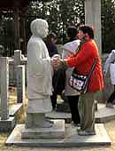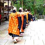 梅田7:10→花坂ドライブインで休憩(お土産を注文)→大門をバスで通過→中の橋駐車場→奥の院へ墓道を歩く→お供所→嘗試地蔵→「21日縁日行事・お坊さんの行列」、「生身供の儀式」→御廟橋→御廟・参拝→一の橋観光センターで昼食→金剛峯寺・寺内拝観・参拝→九度山・慈尊院参拝→高速道→6:10梅田帰着 四国八十八ヵ所すべての巡礼が終わり結願すると高野山へお礼参りに行くのが習わし。四国遍路は弘法大師の足跡を辿る旅であり、無事に八十八ヵ所を巡り終えた同行二人(⇒常に弘法大師と一緒)のご報告と感謝の気持ちを、今でも高野山で生きて瞑想を続けておられるとされる弘法大師にお伝えに行く。 |