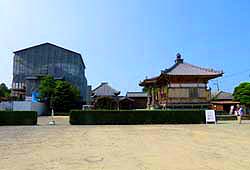 ![]() 金剛福寺 補陀洛東門 庭園 左・大師堂 右・本堂 多宝塔? |