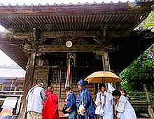 ![]() 山門 両側に大きな草履だけのお出迎え 本堂 大師堂 |