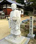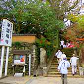 | 【第18番 母養山 宝樹院 恩山寺】 高野山真言宗 本尊:薬師如来 開基:行基菩薩 創建:天平年間(729?749) 真言:おん ころころ せんだり まとうぎ そわか (歴史・由来) 創建は聖武天皇の勅願により、行基菩薩が草創して、当時は「大日山福生院密厳寺」と号した。本尊には行基菩薩が薬師如来像を彫造して安置されている。災厄悪疫を救う女人禁制の道場で、十九番霊場に向かって下る花折り坂から上には、女性は入れなかった。弘仁5年(814)ころ、弘法大師がこの寺で修行をしていた時に、大師の生母・玉依御前が讃岐の善通寺から訪ねてきたが、寺は女人禁制、大師は山門近くの瀧にうたれて7日間の秘法を修し、女人解禁の祈願を成就して母君を迎えることができた。やがて母君は剃髪をして、その髪を奉納されたので、大師は山号寺名を「母養山恩山寺」と改め、自像を彫造して安置され「我が願いは末世薄福の衆生の難厄を除かん」と誓われた。 その後寺は焼失しているが、江戸時代になって阿波藩主の庇護をうけて繁栄し、現在の本堂や大師堂は文化、文政年間(1804?30)に建立された。境内には玉依御前を祀る小堂があり、母君に孝養をつくして、大師が植樹したびらんじゅは、県の天然記念物にもなっている。母君を慕う大師の心が、今尚、宿っているような寺である。 (見どころ) 玉依御前の剃髪所 大師堂の手前「大師御母公剃髪所」の石碑と小さなお堂が建ち、大師作と伝えられる「御母公像」、母君の髪の毛が安置さ れている 弘法大師像 大師自ら彫造した像で、現在、大師堂の本尊とされている 「源義経上陸の地」石碑 境内の山裾にあり、近くの神社に義経が弓を引くいている銅像 |