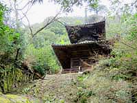 第37番札所 藤井山 五智院 岩本寺 (ふじいさん ごちいん いわもとじ)宗派:真言宗智山派 本尊:不動明王・観世音菩薩・阿弥陀如来・薬師如来・地蔵菩薩 開基:行基菩薩 創建:天平年間(729?749) 歴史・由来岩本寺は清流四万十川が流れ、標高が300m程の高南台地が広がる四万十町に、五尊の本尊を祀る。寺伝によれば、聖武天皇の勅を奉じた行基菩薩が、七難即滅、七福即生を祈念して、現在地より北西約3qの付近にある仁井田明神の傍に建立したと伝えられる末寺七ヶ寺をもつ福圓満寺が前身とされる。仁井田明神の別当職(別当寺)であったことから、仁井田寺とも呼ばれていた。弘法大師がこの寺を訪ねたのは弘仁年間。大師は一社に祀られていた仁井田明神のご神体を五つの社に別け、それぞれの社に不動明王像、観音菩薩像、阿弥陀如来像、薬師如来像、地蔵菩薩像を本地仏として安置した。大師は、さらに末寺五ヶ寺を建立された。このことから、福圓満寺等は七ヶ寺と合わせて十二福寺、また仁井田明神は仁井田五社と呼ばれていた。 見どころ大師堂:200年ほど前の建造物で、境内では最も古い |