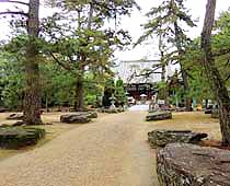 ![]() 伽藍・東院と誕生院・西院の境界門 (御影堂)大師堂 御影池(奥・弘法大師 前・左から父・釈迦如来・母) 御影の松(枯木) |