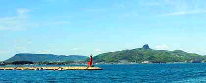 ![]() 宿泊はホテルパールガーデン 屋島寺からの下りにバスの窓から 八峯寺から志度寺へ向う途中の屋島と五剣山(右) |
